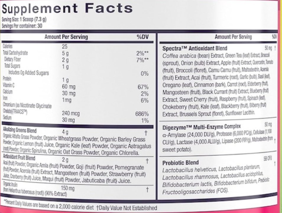 Each serving includes a powerful digestive enzyme and probiotic blend to help optimize gut health and nutrient absorption. With a smooth, refreshing taste and zero synthetic flavors or colors, Alani Nu Super Greens is perfect for anyone looking to increase daily micronutrient intake without the grassy aftertaste found in other green powders.