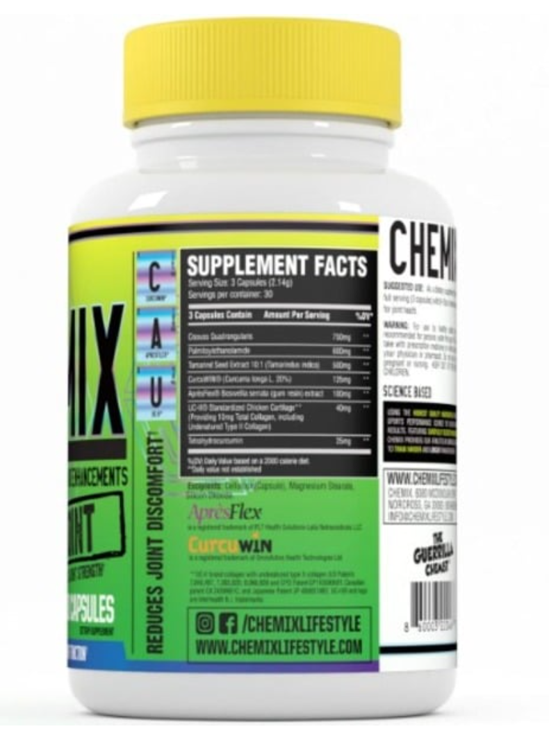 Chemix Joint is a premium, fully comprehensive joint support formula created to keep your joints healthy, mobile, and free from discomfort. This advanced blend works through multiple pathways to promote lubrication, reduce flare-ups, and protect your joints during intense training sessions. Every ingredient is clinically dosed to deliver effective results, with seven total compounds, including two trademarked ingredients, working synergistically to optimize performance. Chemix Joint not only helps you train longer and harder but also supports faster recovery so you can stay consistent in the gym.